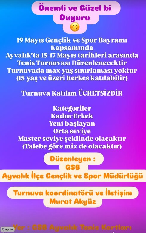 - 📍 Yer: GSB Ayvalık Tenis Kortları