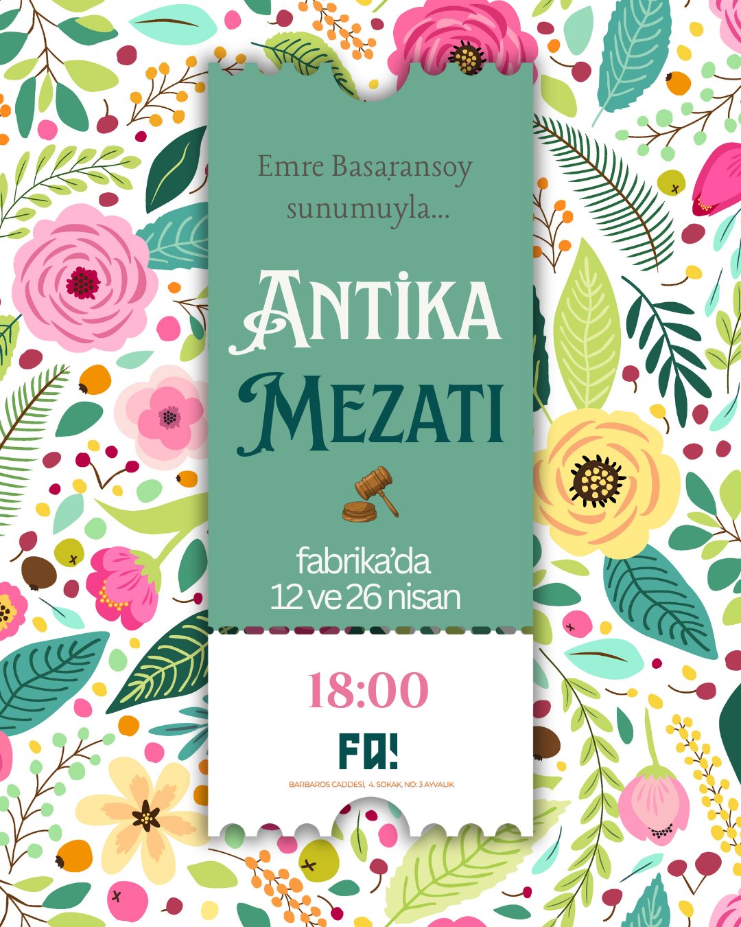 Emre Başaransoy sunumuyla antika dünyasının büyüsüne davetlisiniz! 12 ve 26 Nisan Pazar günü saat 18.00’de Fabrika Ayvalık’ta gerçekleşecek mezatta alıcı ve satıcı olarak siz ve değerli çevreniz buluşuyor.