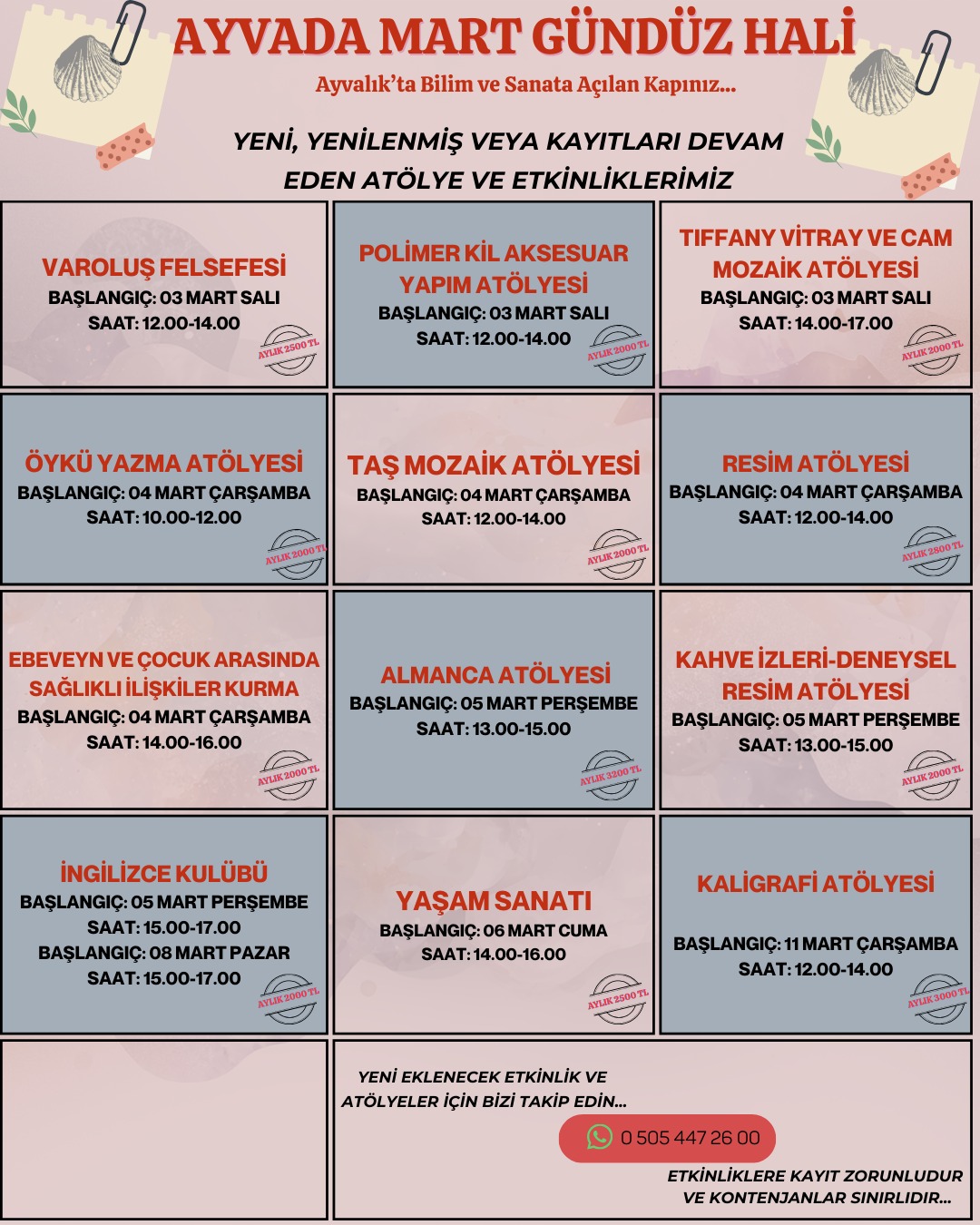 ⌛ Kontenjan sınırlı olduğu için kayıt zorunludur. Atölyeye kayıt için DM’den yazabilir ya da telefonla iletişime geçebilirsiniz.
