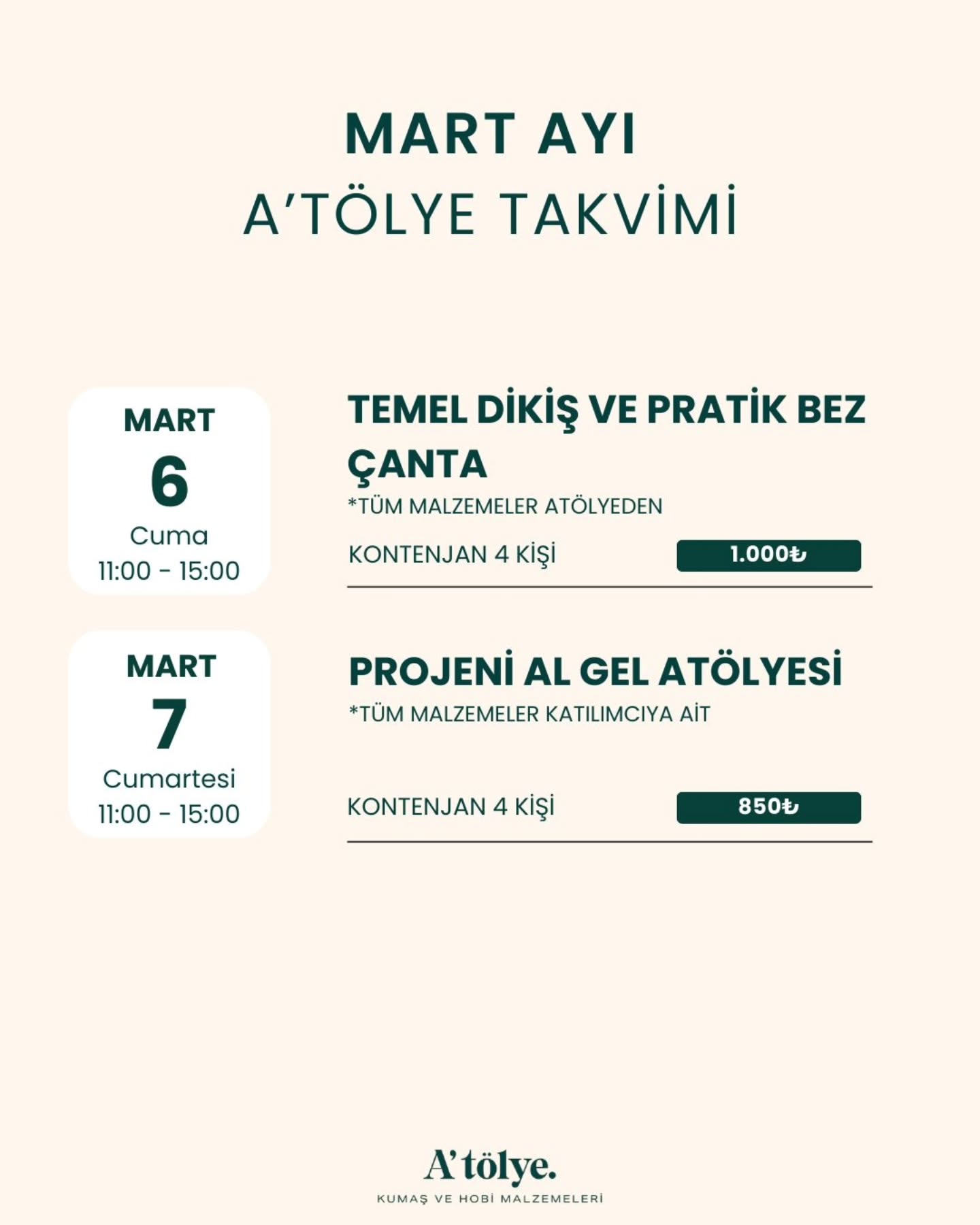🧵 Mart Ayı Dikiş Atölyesi Takvimi 🧵