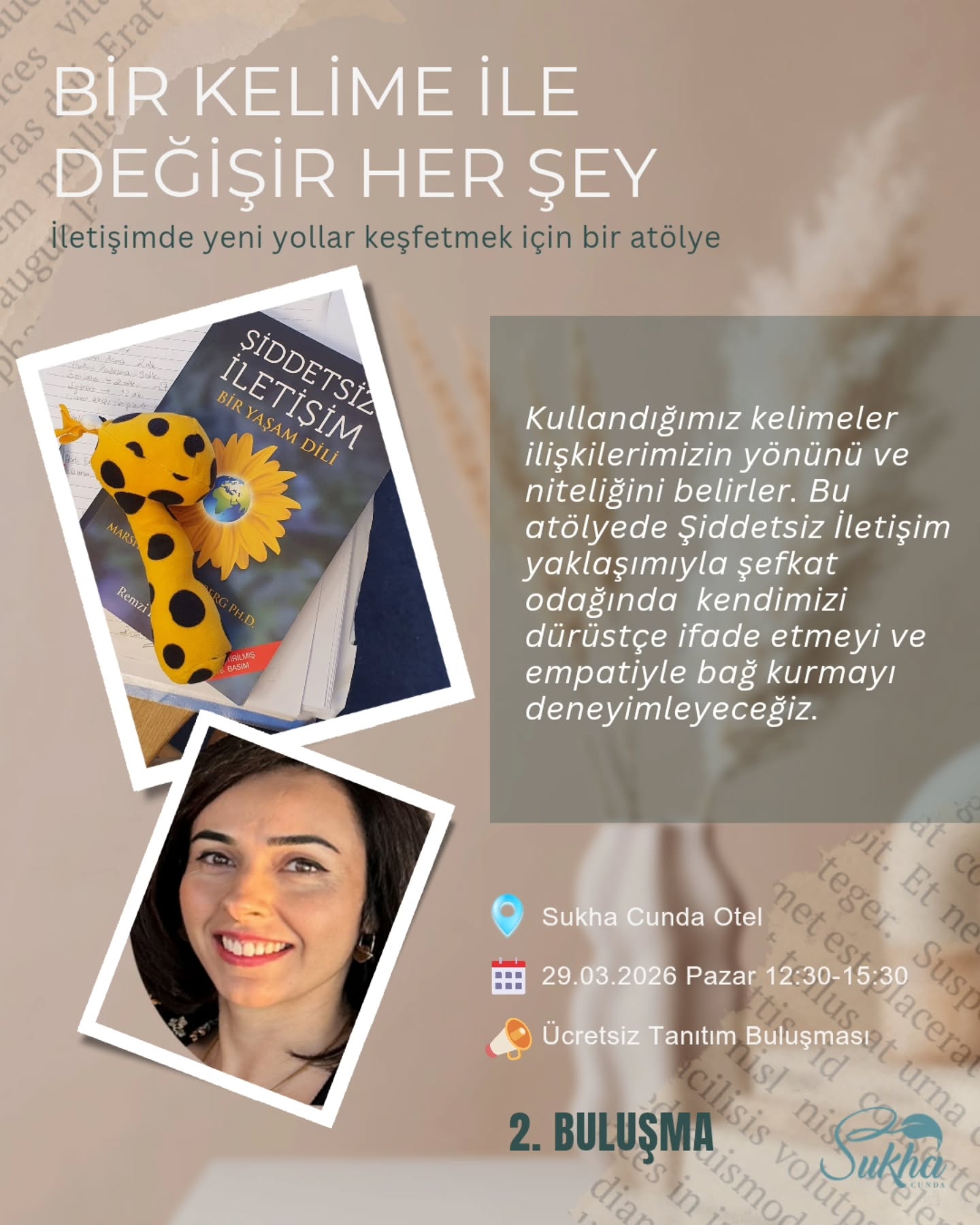 Bu pazar, 29 Mart 2026’da Şiddetsiz İletişim’in özüne dair konuşmak ve alıştırmalar yapmak için tekrar bir araya geliyoruz. Ücretsiz olan bu buluşmaya katılmak isteyenler DM’den yazabilir.