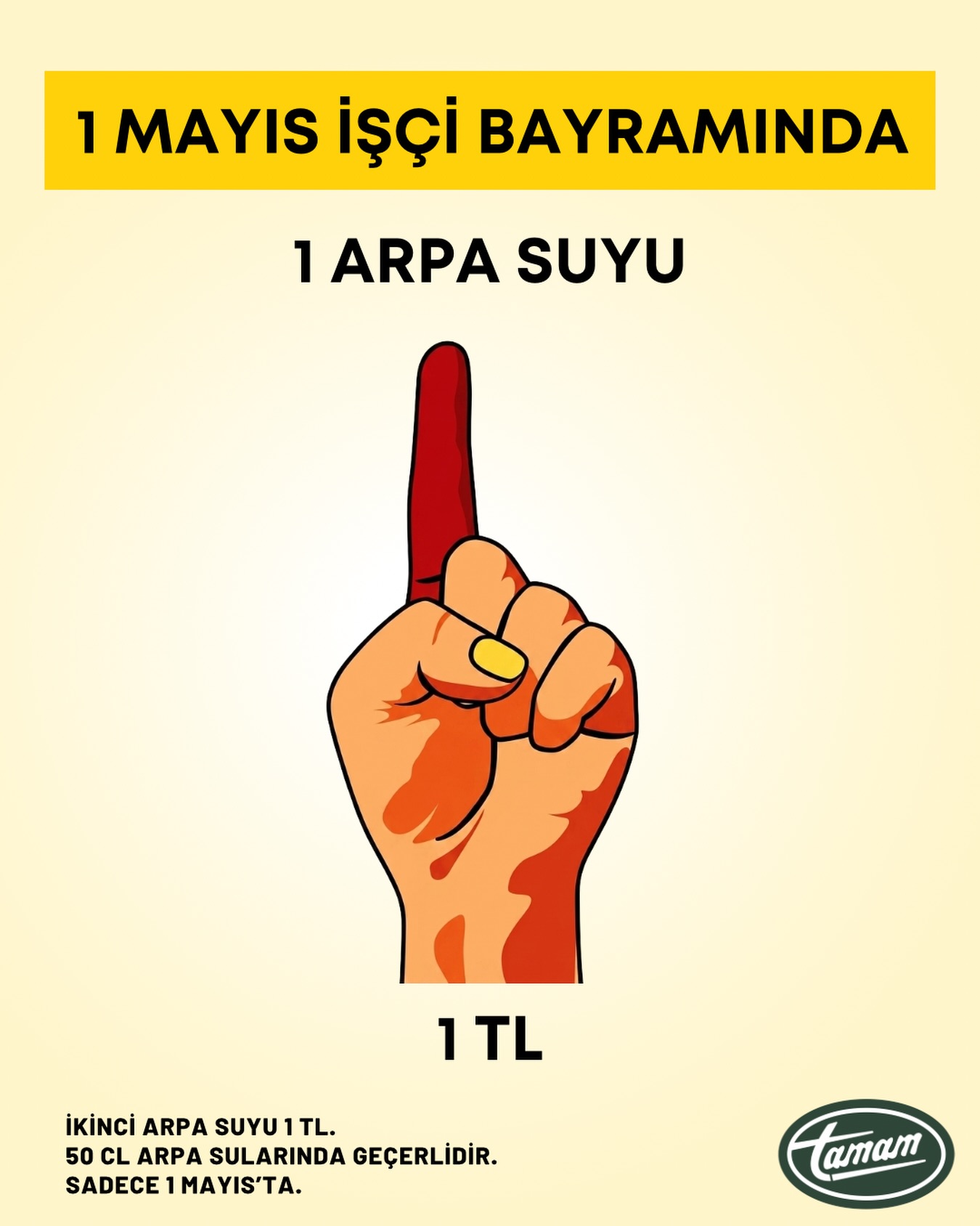 Dayanışmanın ve emeğin bayramında, Tamam Meyhane’de arpa suyu şişeleri sembolik fiyatla seni bekliyor.