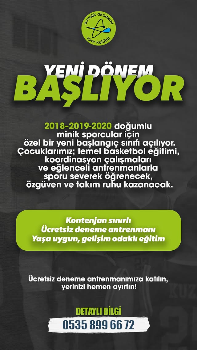 2018-2019-2020 doğumlu minik sporcular için özel bir başlangıç sınıfı açılıyor! Çocuklarımız temel basketbol eğitimi, koordinasyon çalışmaları ve eğlenceli antrenmanlarla sporu severek öğrenecek, özgüven ve takım ruhu kazanacak.